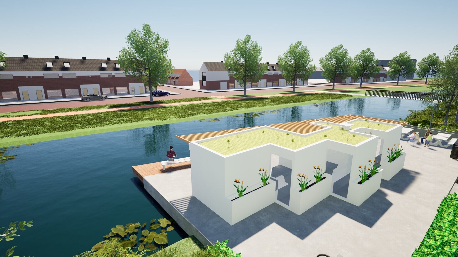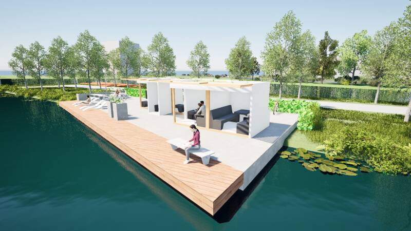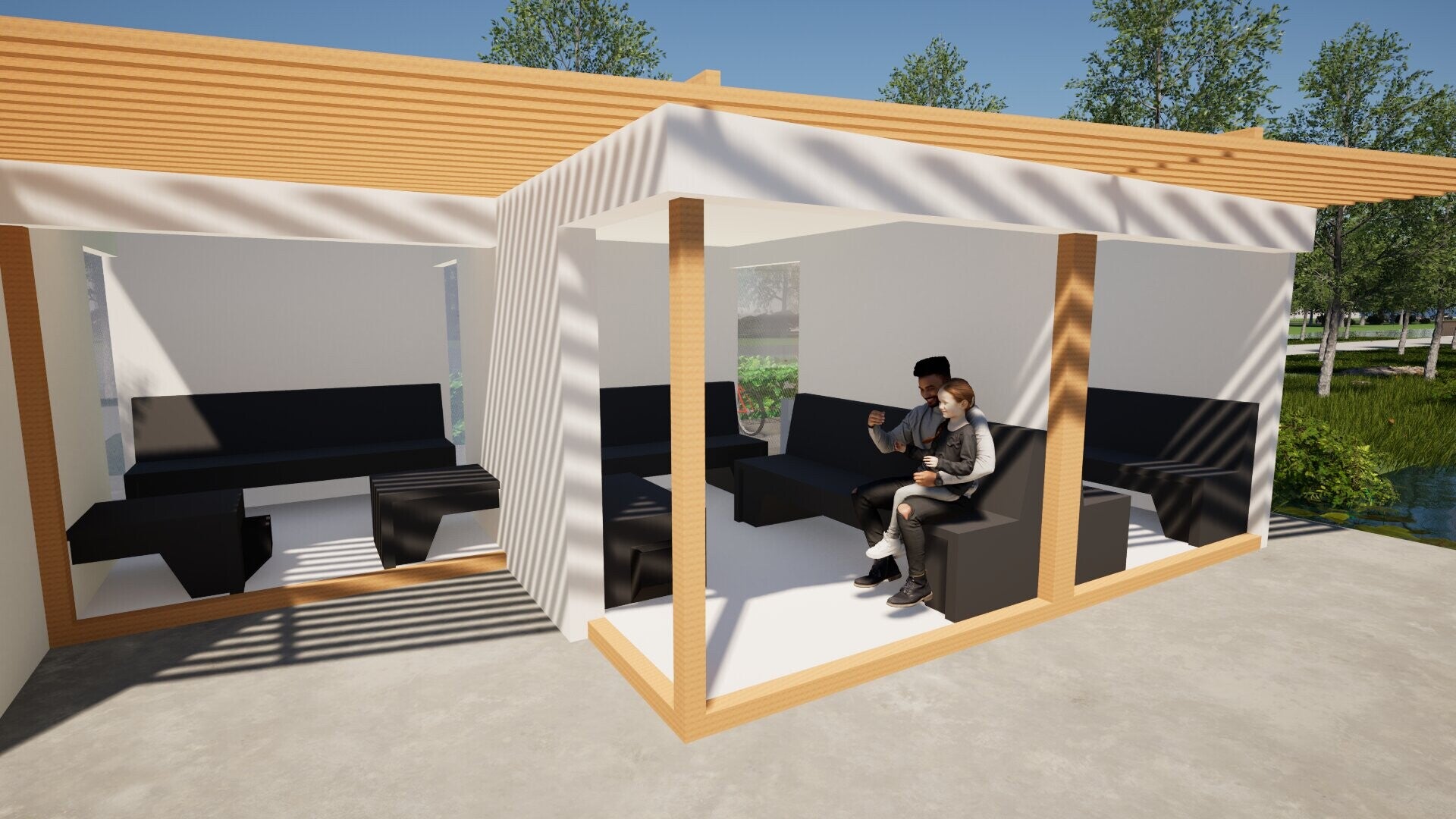 Langs het water in het park langs de Weidonklaan ligt Myspace. Een ontmoetingsplek, een rustplek, een speelplek of een zwemplek. Het is een plek voor jong en oud om van de natuur te genieten. In de rust van de natuur langs het golvende water. We hebben gekozen voor een simpele kleurenstelling zodat het een rustig gevoel geeft. We hebben gebruikt gemaakt van materialen zoals Trespa®, hout en beton. We hebben hiervoor gekozen zodat het duurzaam is en makkelijk te bouwen. Ons doel is dat het op deze manier lang netjes blijft en niet makkelijk te vernielen is.