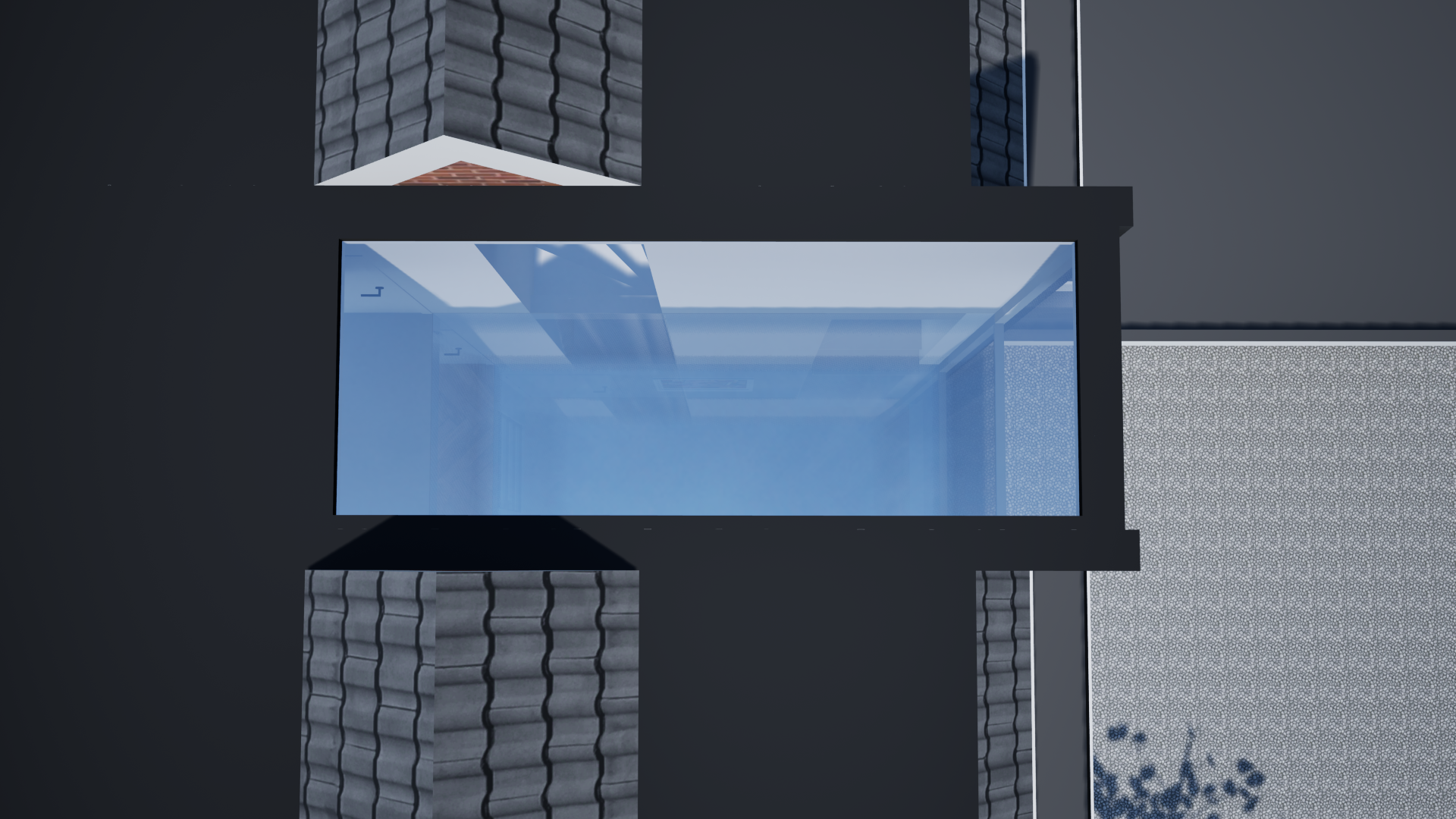 In het midden van het huis hebben we gekozen voor een modern ontwerp. Hier zie je grote ramen die zoveel mogelijk daglicht bieden van twee verschillende kanten. Deze lopen vanaf het maaiveld helemaal door naar de bovenkant waar het doorloopt in de dakkapellen. We hebben hier gekozen voor een metalen afwerking. Op deze manier zorgen we dat hier weinig focus op komt. In de dakkapellen hebben we ook aan twee kanten grote ramen geplaatst wat zorgt dat je de hele dag zon in de ruimtes hebt.