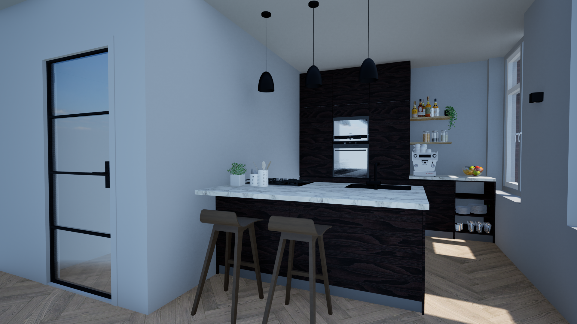 In de rest van het huis hebben we ook veel natuurlijk licht. Zo ook in de woonkamer en keuken was dit een belangrijk aspect. Op deze manier kan je veel gebruik maken van kleuren zonder dat het huis donker wordt. In de keuken hebben we daarom ook gekozen voor een gerookt eiken keuken. Dit geeft veel contrast en zorgt daardoor dat het heel mooi in het huis past. Dit hebben we ook met andere kleurenkeuzes gedaan in de keuken en woonkamer en keuken. Op die manier hebben we een warme luxe sfeer kunnen creëren.